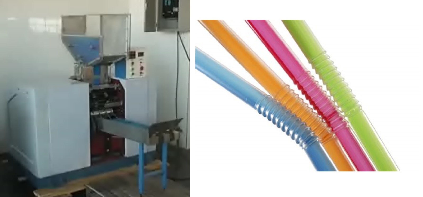 1. 放入切割成形后的吸管 2. 分料机构自动将单支吸管送入转盘 3. 弯曲吸管成形 4. 成品进入运输带 |