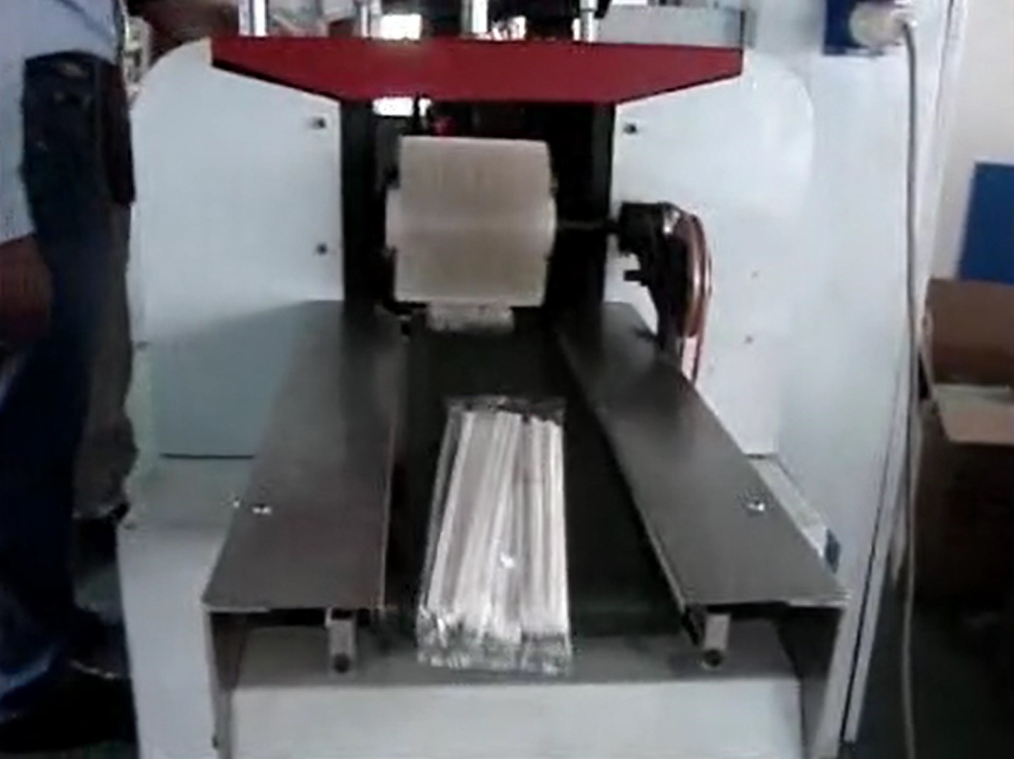 此生产设备应用于吸管的袋状包装 设备以定速滚轮转动方式计算, 配合传感器准确控制包装数量至+/-0件工差 可设置不同的包装数量 设备以全自动方式高速运作, 非常稳定, 大幅降低生产人手成本 设备可应用于不同长度的吸管, 及使用不同胶袋包装 |