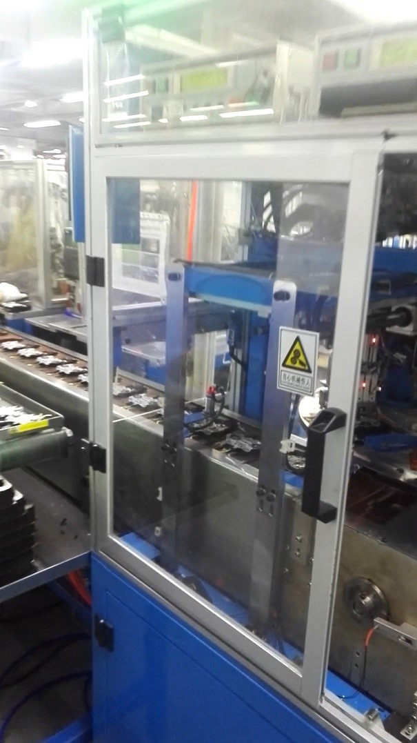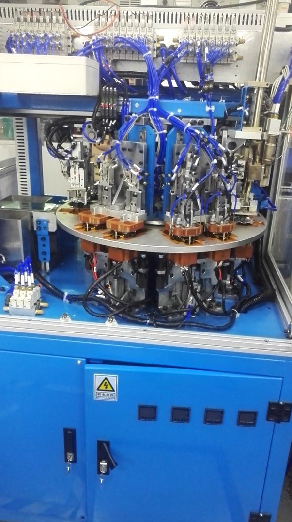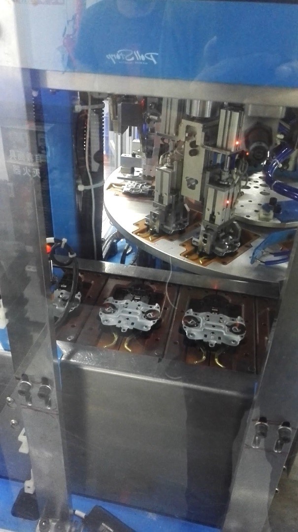 此生产设备应用于电热水壶温控开关的全自动检测.