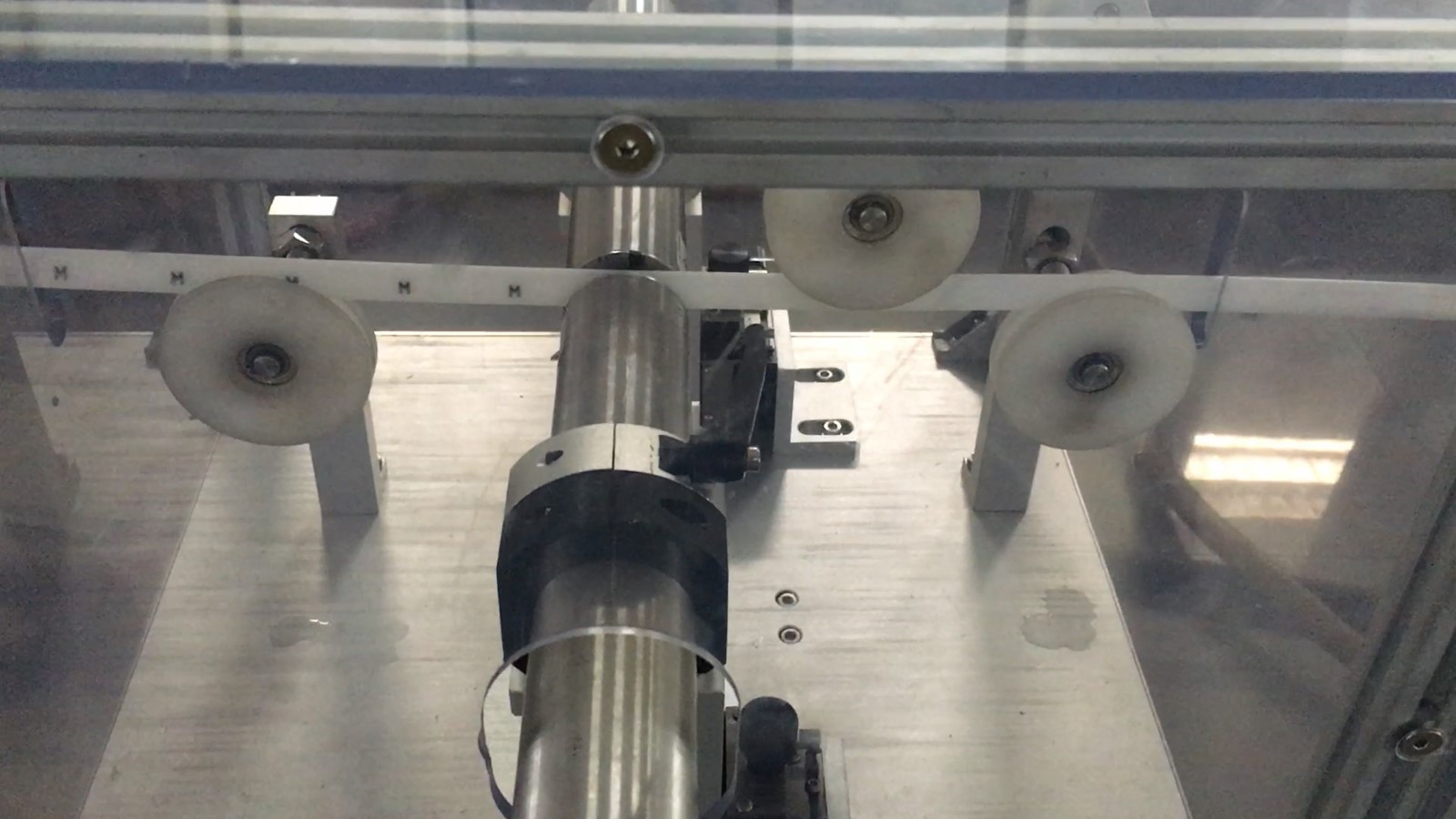 1. 真空加料機把膠料吸進擠出機 2. 擠出機炮筒加熱膠料, 擠出膠料至擠出模具 3. 碼珠經模具成形後進入冷卻系統 4. 經過冷卻糟完全冷卻 5. 數碼噴墨機將預設字型噴印產品上 6. 切割成品進入成品區 |
