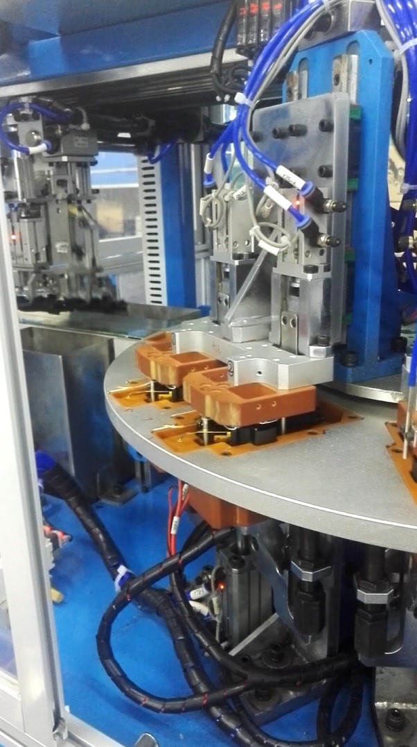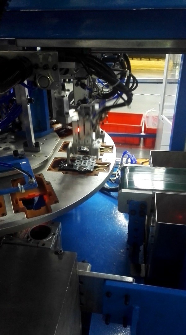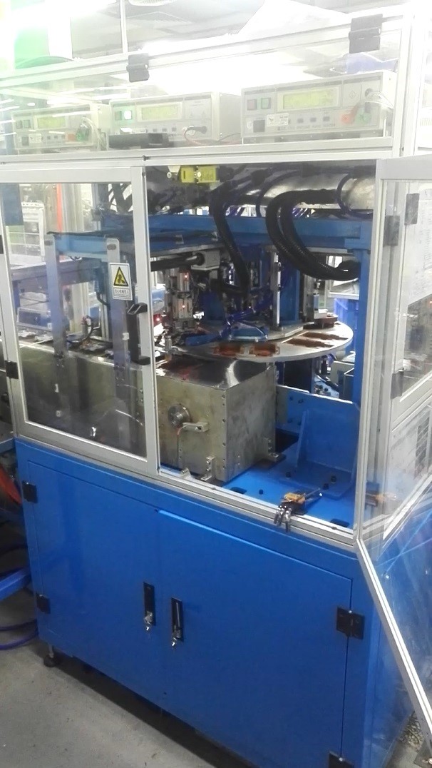 此生產設備應用於電熱水壺溫控開關的全自動檢測. 設備由2個轉盤組合而成, 對產品進行不同類別的100%品質全檢. 檢測動作於不同工位同步連續進行, 省卻每個工序的等待時間. 設備以全自動方式運作, 比傳統人工100%品質全檢, 大幅度節省時間及人手成本. 以自動化方式作品質檢測, 準確度比人工精準及穩定. 針對大產能訂單需求特製, 優勢的連續性及穩定性配合每週7x24生產計劃. |
